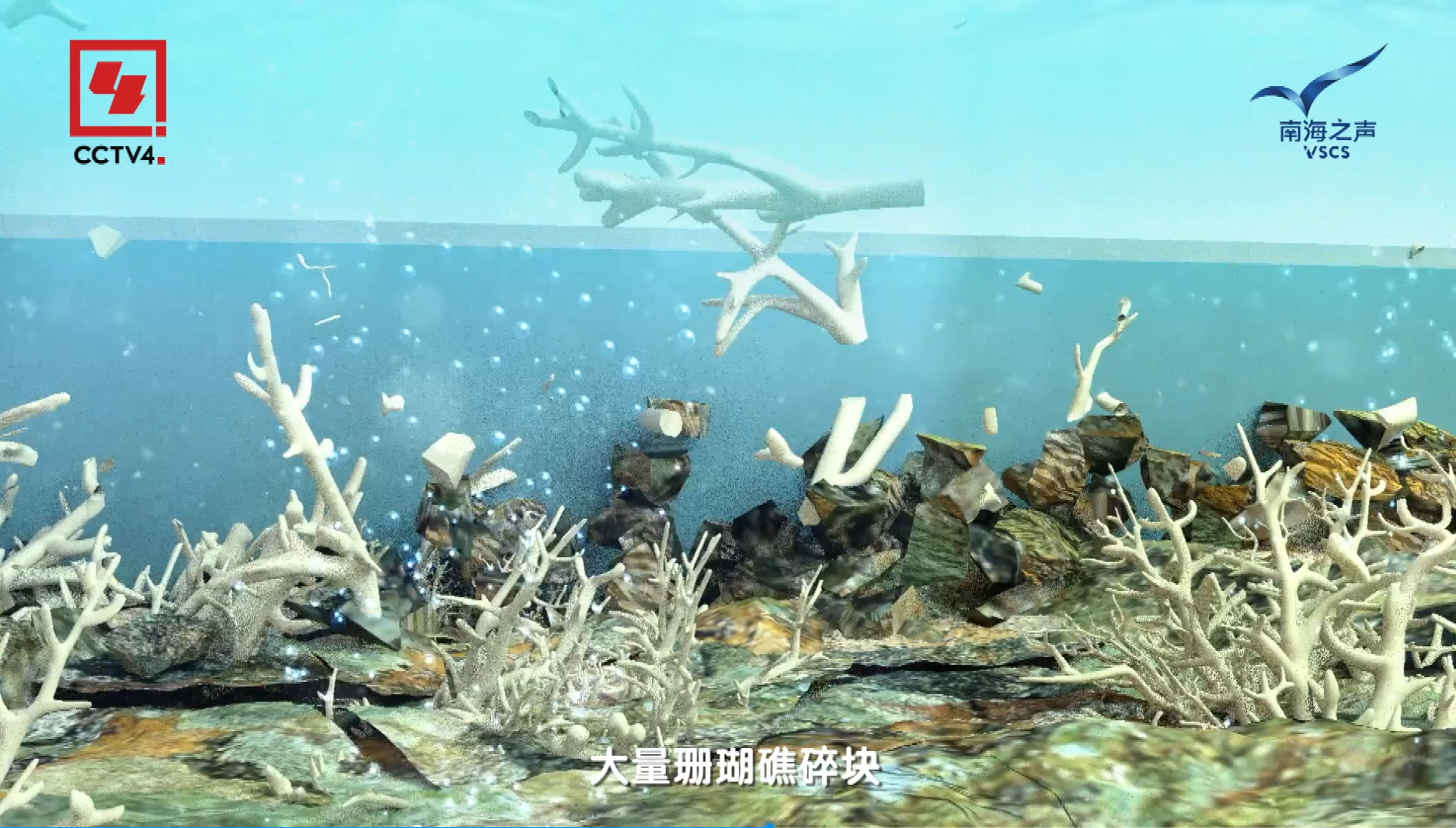 中英双语纪实短片《仁爱礁:南沙之泪》专访多位参与该项目遥感影像、现场调查的科学家和科考队员,以高清实拍、三维动画等形式还原“坐滩”军舰对仁爱礁珊瑚礁生态系统的致命性破坏,并全面深入分析仁爱礁珊瑚礁生态系统退化的主要原因。