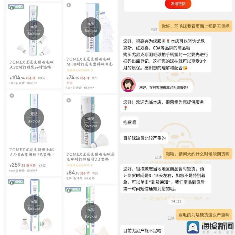 在尤尼克斯线上官方旗舰店,多款羽毛球显示无货,“目前球缺货比较严重,预计到货时间3-15天左右。”该店客服告诉记者,目前,尤尼克斯的产能出现不足,因此出现缺货的情况。