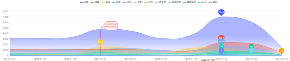 从舆情走势图可以看出,相关话题声量最高峰出现在7月8日。