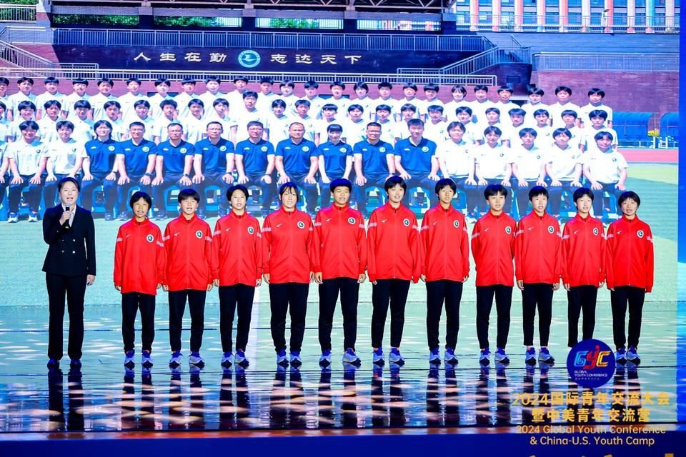 开幕式上,在GYC青年说环节,精彩的演讲洋溢着青春的激情。外国青年代表,中国海洋大学英语教师孙秀兰分享了作为一名高校教师在在山东工作、生活经历;山东青年谢悦然代表济南市历城二中女子足球队分享了带领球队夺得2023年世界中学生足球锦标赛女子组冠军的故事。