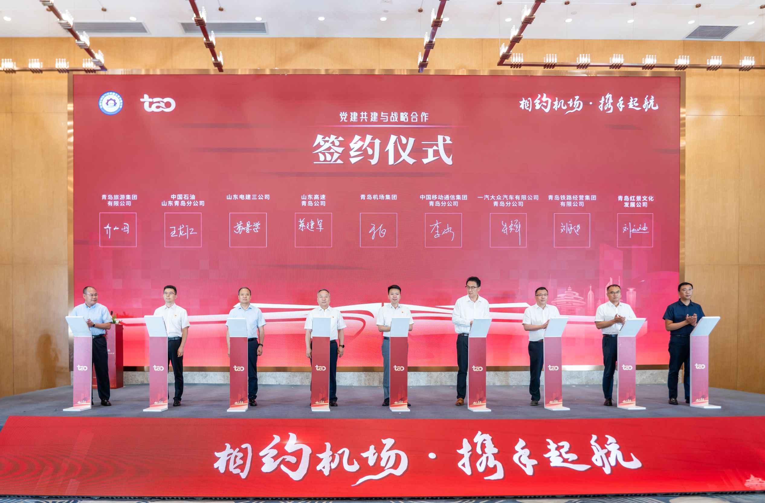 活动中,青岛机场集团与中国移动青岛分公司、山东高速青岛公司、一汽大众青岛分公司、山东电建三公司、青岛铁路经营集团、中国石油山东青岛分公司、青岛旅游集团、青岛红景文化发展公司等会员单位现场签署了党建共建与战略合作协议;启动“驻青国企品牌形象(公益)宣传”活动,依托青岛国际机场自身广告资源优势,为驻青国企搭建展示企业形象和品牌文化公益宣传阵地。后续,还将与“上合之夏”胶东国际机场系列活动相结合,在机场优质区域进行产品展示、展销活动,进一步提升各类参与企业的品牌影响力。