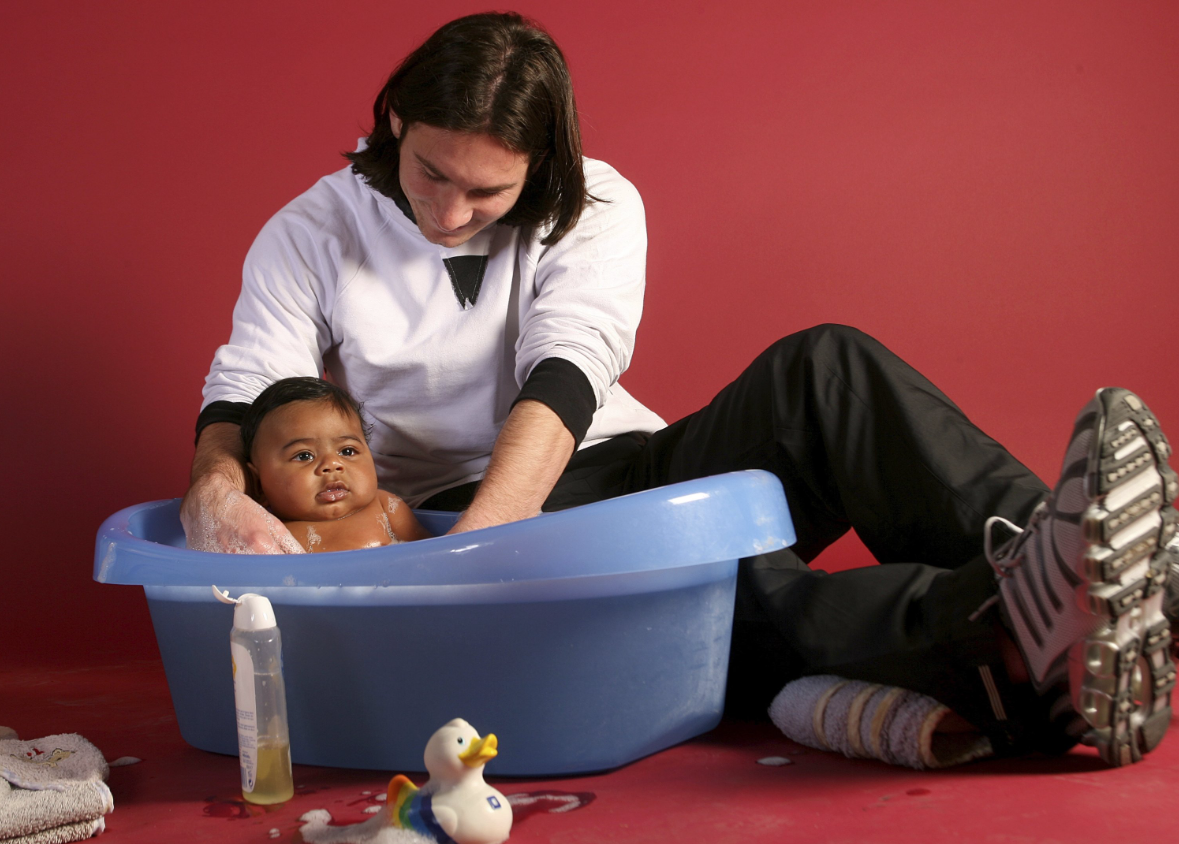 ▲梅西给刚出生的亚马尔洗澡