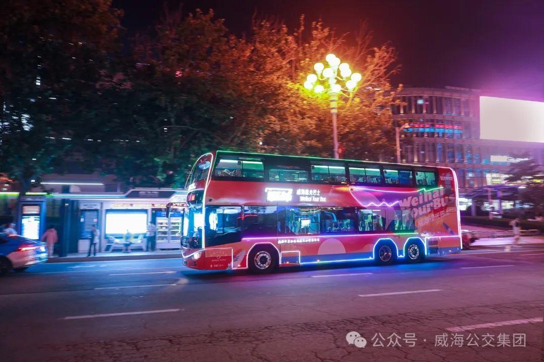 夜游威海观光巴士(威高广场-火炬八街)双层巴士运行