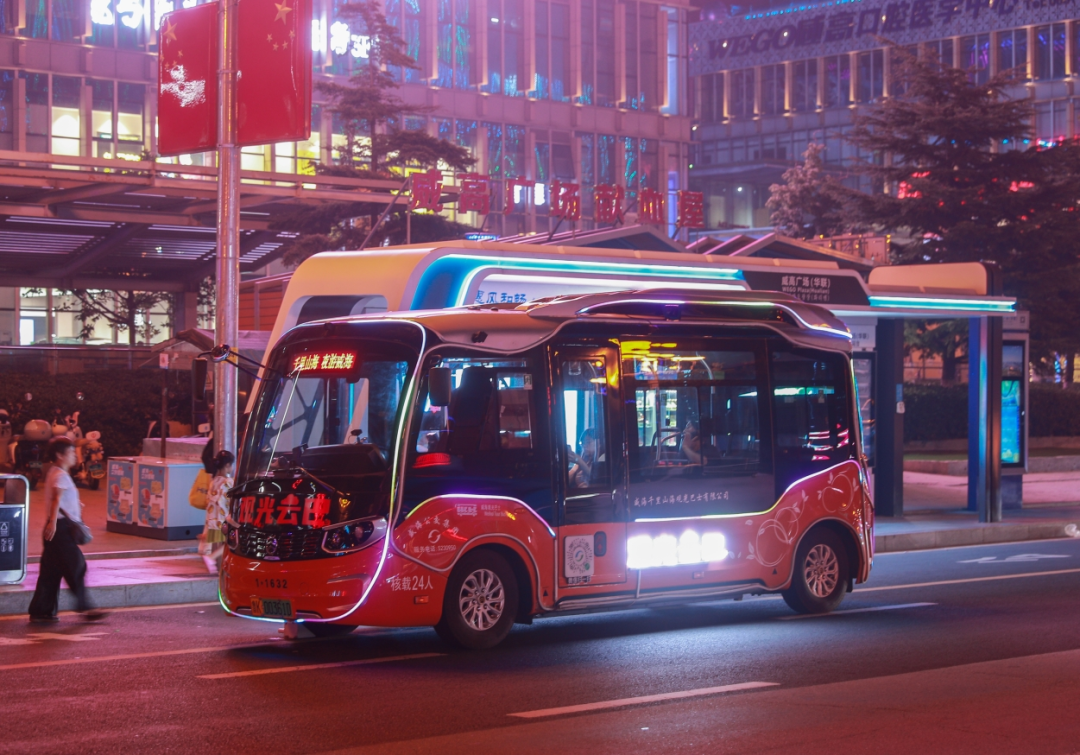 夜游威海观光巴士(威高广场-火炬八街)云巴运行