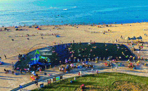 威海国际海水浴场因沙滩沙质细腻,海水清澈,毗邻林海公园、火炬八街,是市民和游客夏季必去的纳凉游玩之地。乘坐7路车可通达威高广场、大世界步行街、小商品市场、国际海水浴场、日落湾等商圈、打卡点。