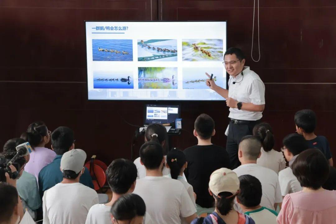 “当母鸭带着一群小鸭游泳的时候,会是母鸭在前面打头阵,一群小鸭依次排开。为什么是这样?”哈工大(威海)海洋工程学院水池实验室副主任方庆贺用一节生动有趣的船海知识小课堂,介绍了兴波、波浪等海洋工程学概念,为学生们开启了本次探索之旅。