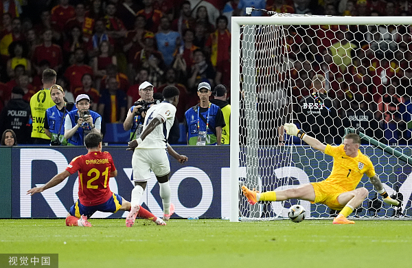 但西班牙没有慌乱,马上卷土重来,先是亚马尔的低射被皮克福德奋力扑出,第86分钟库库雷利亚左路斜传门前,同样替补登场的奥亚萨瓦尔门前铲射破门,西班牙2比1再度领先。整个配合行云流水,连续多脚传递打穿防线,英格兰人根本没机会碰到球,这次破门是西班牙整届欧洲杯完美表现的缩影。