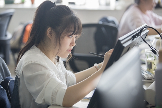 90后漫画师、济南市D类人才丁姣正在创作。受访者供图