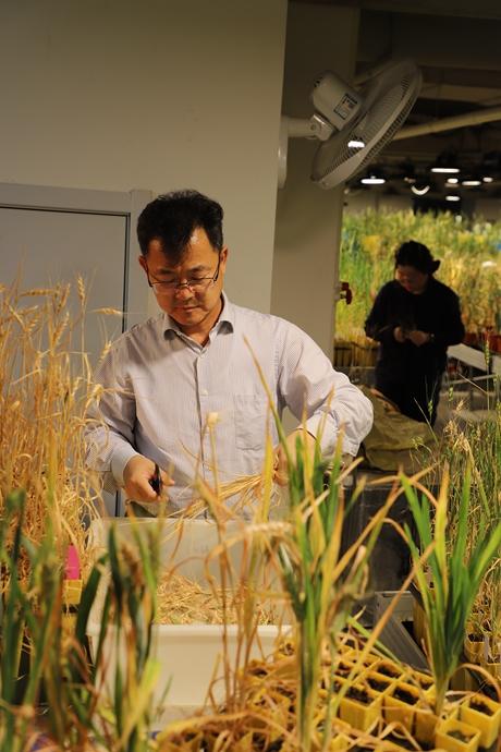 付道林教授在实验室进行杂交小麦育种研究。受访者供图