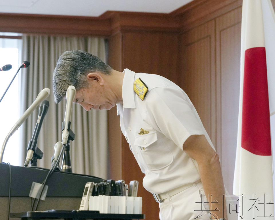 7月12日,日本海上自卫队幕僚长酒井良在记者会上就相关丑闻道歉。
