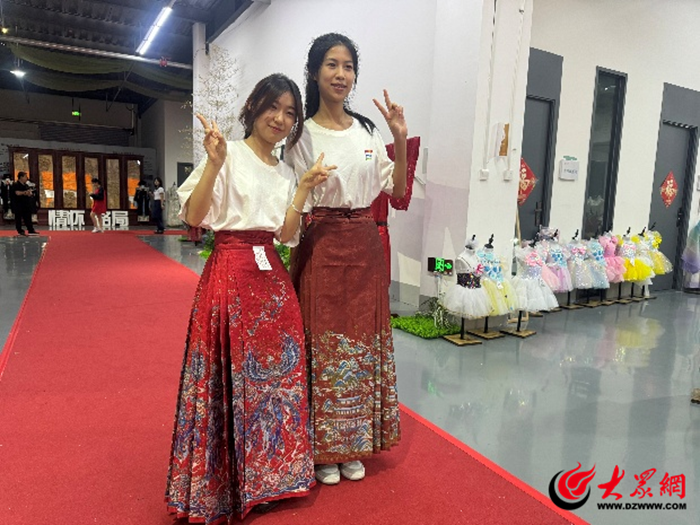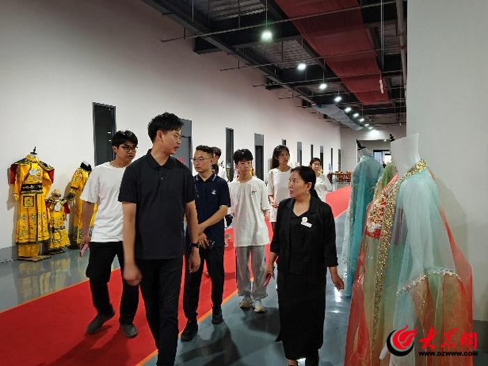 16日下午,调研团探访有爱汉服总部基地,实地考察传统服饰拉动网红经济引领“国潮风”的曹县密码。从“宇宙中心”到“产业中心”,有爱汉服是全国唯一一家集设计、生产、制作、包装、销售的一体化企业,并且采取线下源头批发、线上直播带货的形式,推动汉服产业在曹县呈现井喷式发展。“火”是有道理的。调研走访时,成员们发现这里和其他非遗企业的不同——年轻人众多。所有汉服均由年轻团队设计,融合传统文化配饰的汉服定板生产后,由年轻人直播推广,火速在年轻群体中“出圈”,呈现出件件爆款、供不应求的局面。团队成员赵福源、秦绪瑞试穿马面裙后说:“如果每天都能试穿新款式的汉服,我也想留在这工作。”不仅如此,“共同富裕”是进入企业首先看到的标语。开展“千村万人免费电商培训活动”“青年电商培训班”等培训活动1000余场次,培训青年6万余人次,提供优质岗位204个,有爱汉服擦亮“青”字号服务品牌,积极带领广大青年跑上电商经济“加速度”,在共同富裕中焕发出文化“两创”“年轻态”。