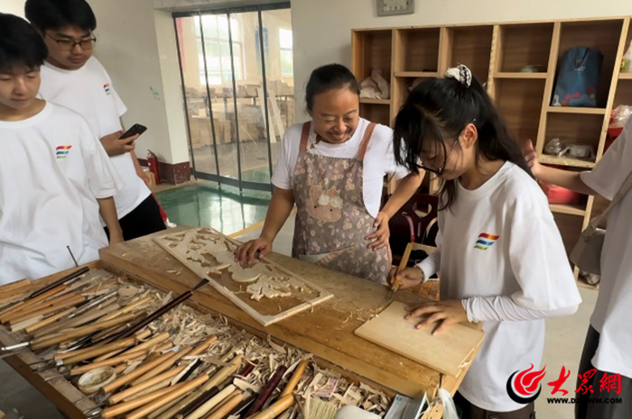 曹县泡桐树资源丰富,将传统非遗与棺木制作相结合是李如启家族三代人的百年产业,在偶然的契机下,日本棺材市场和中国代工厂结缘,成功将传统文化推向海外。他谈到,非遗传承人都有一种乡土情结,作为本土企业,有义务将非遗发扬光大,更有责任带领全村人致富实现共同富裕,同时,也希望有更多的年轻人加入木雕行业,让这一技艺永远传承下去。通过调研采访,实践队员发现非遗文化的魅力不仅是摆在橱窗中的工艺品,更是带领致富的“金钥匙”,从而实现物质文明与精神文明协调发展,成为中国式现代化的现实体现。