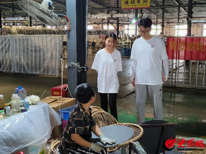 16日上午,调研团前往曹县慕斯特工艺品有限公司,调研国家级非物质文化遗产传统美术项目曹县柳编的创新转化情况。顺时代之变,赢发展之机。为顺应时代潮流、满足国际化家具不同风格的市场需求,企业对柳编材料进行创新,采用新型环保可回收塑料材质进行制作加工,增强了其环保型、柔韧性、舒适性、耐用性等方面优势。在任锦鹏的带领下,成员们前往家具产品展示体验区以及生产车间进行参观。展示体验区中,可以看到风格多样的家具产品,其中以柳编家具为主,成员们在任锦鹏的讲解介绍下,用手触摸、用心感受柳编家具所带来的不同之处。同时,家具制作以人工为主,不仅带动了当地村民就业,也将传统藤编进行创新转化升级,并与欧美国家简约风相结合,进一步扩大了对外贸易,推动助力乡村振兴,实现产业高质量发展。