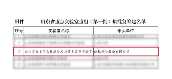 首批名单公示!超越科技牵头筹建山东省自主可靠计算技术与装备重点实验室