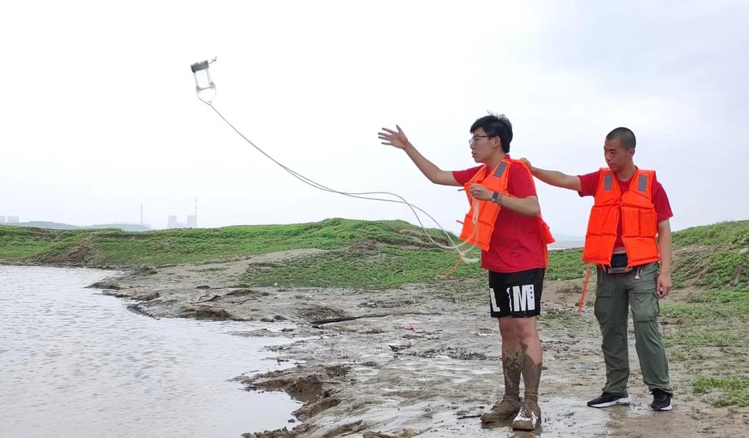 午后,天空突然下起了大雨,但这并没有打乱队员们的节奏,到达风陵渡,他们迅速披上雨衣和救生衣,依然继续着净滩和采集水样的工作。雨水打在他们的脸上,模糊了他们的视线,但他们的双手依然不停地忙碌着。