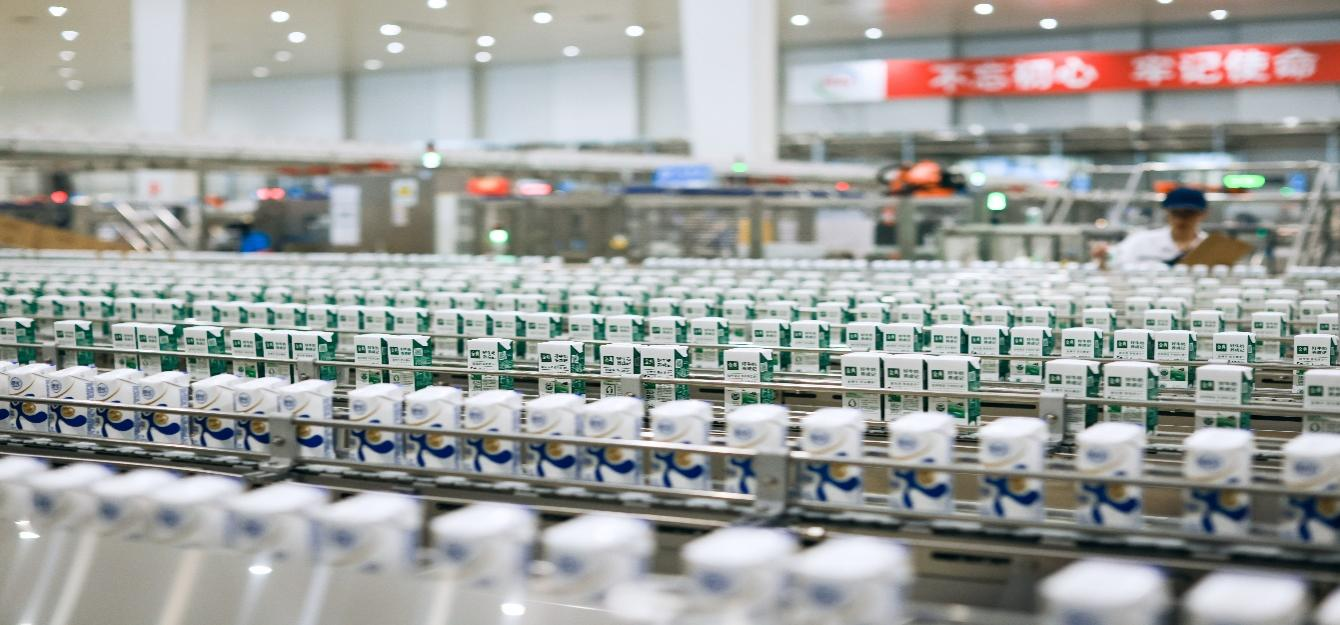 在位于呼和浩特市的伊利现代智慧谷中,一条条现代化生产线有条不紊地运转着,高速灌装机精准地将牛奶灌入包装盒,装箱机器人、缠绕机器人、码垛机器人等先进设备紧密配合,自动将生产好的产品打包好并送入冷库。