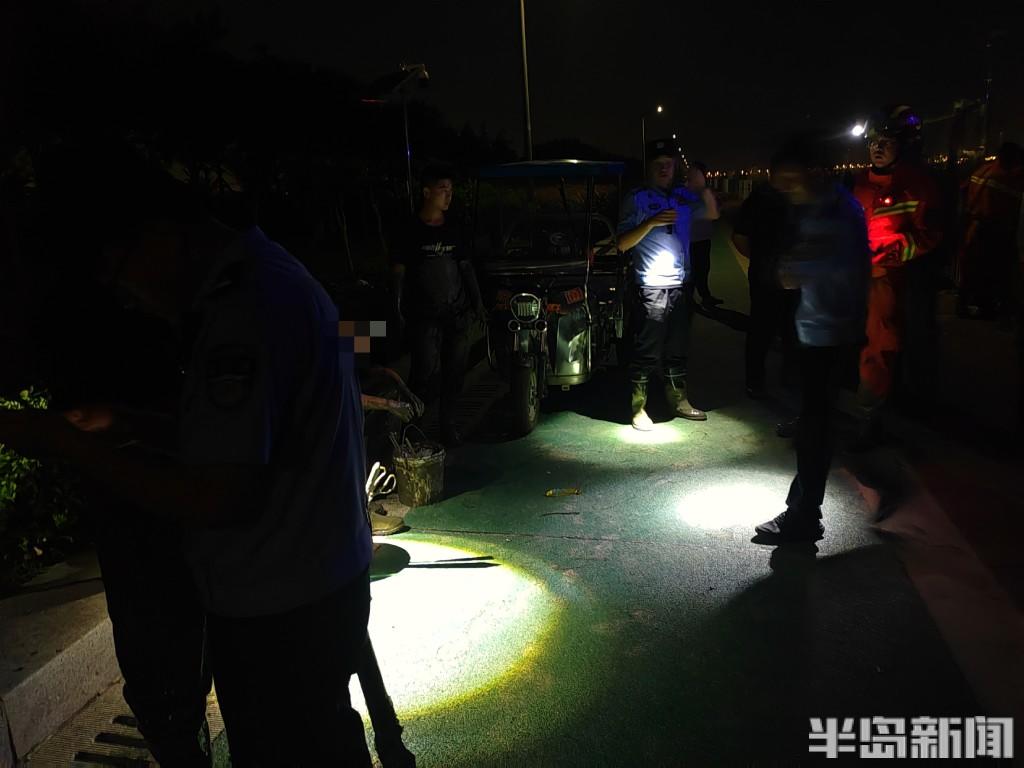 接到指令后,民警立即赶往现场。到达岸边后,民警通过电话联系对方,对方表示找不到方向,但是能看到岸上的警灯。因为天黑视野差,如何尽可能地靠近被困者是不小的挑战。就在此时,一名在附近散步遛弯的热心小伙得知情况,表示自己知道一条小道,可以带领民警靠近求助者。