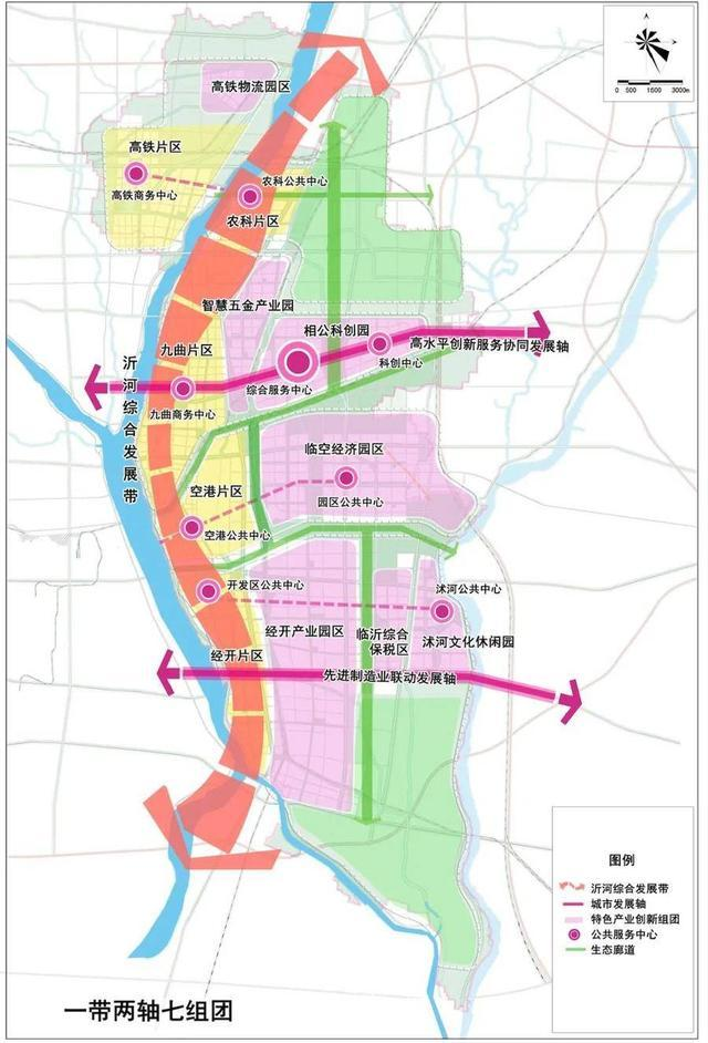 产业也“借势”发展。在北部高铁附近,建设高铁物流园;中部机场附近,建设临空经济园区;南部处在长深高速和京沪高速公路的中间连接线上,建立先进制造业联动发展轴,临沂综合保税区等处在这一轴线附近。
