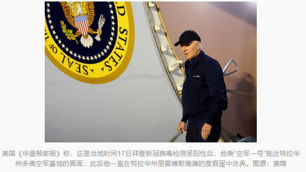 报道称,这名官员称,拜登在考虑他的政治前途时,除了最近几天因新冠诊断而进行的每日医生检查外,并没有进行任何重要体检。医疗健康问题并不是最终问题。
