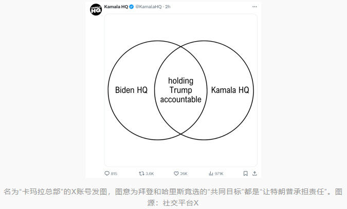 外媒:拜登竞选团队X账号已从“拜登总部”更名为“卡玛拉总部”,并发图问责特朗普