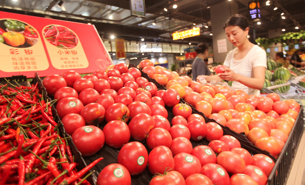 2024年6月12日,消费者在山东省临沂市平邑县一家超市选购蔬菜。 图片来源:新华社