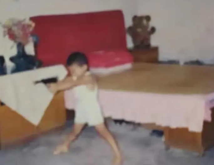 当时夺得铜牌后,李家人“自豪地”拿出了李越宏小时候玩枪的照片
