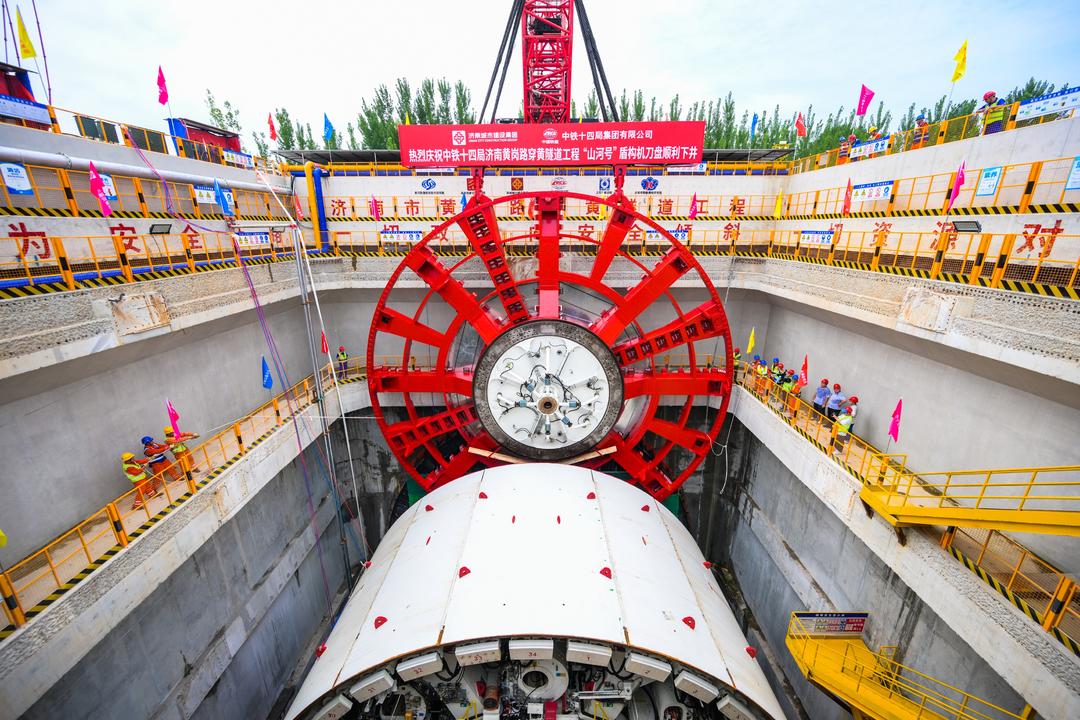 7月24日,随着直径17.5米的超大直径盾构机“山河号”刀盘顺利下井,由济南城市建设集团投资建设、中铁十四局集团承建的济南市黄岗路穿黄隧道盾构机组装工作基本完成,即将进入调试阶段,世界最大直径水下盾构隧道盾构始发进入“倒计时”。