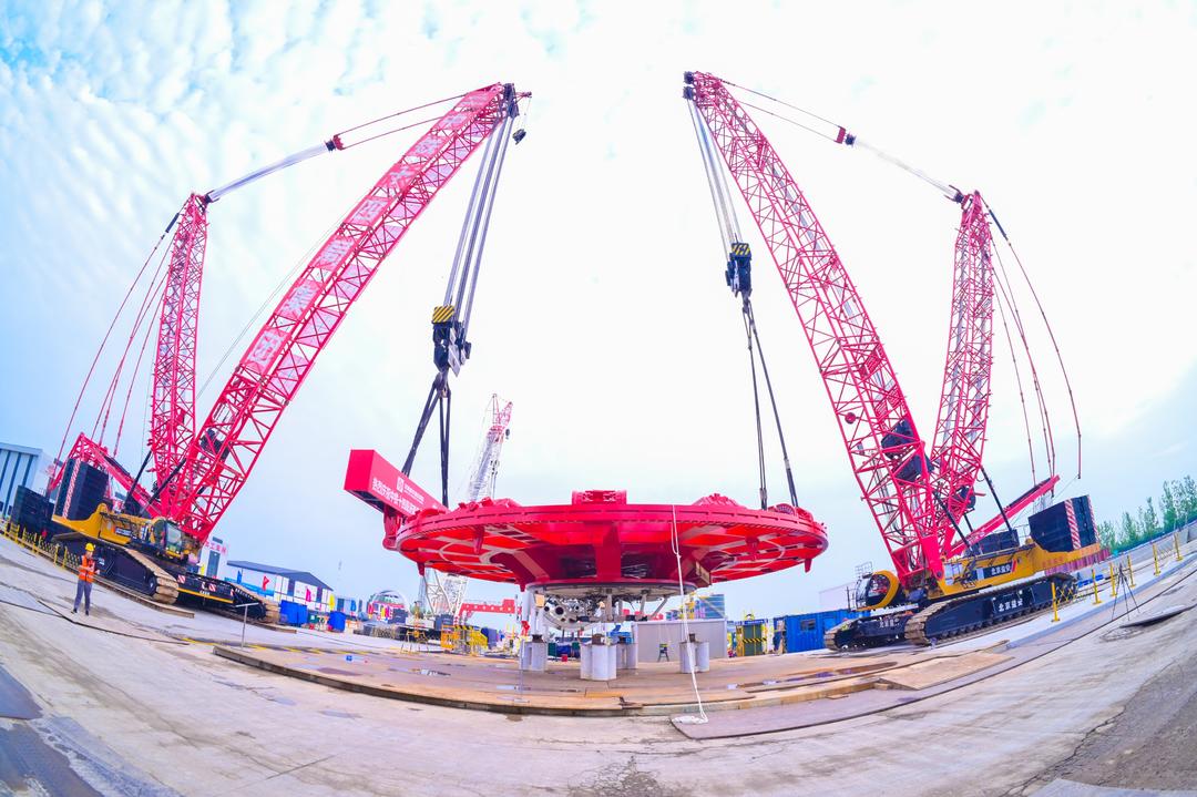 “麒麟”就位!世界在建最大泥水盾构机“山河号”刀盘在济南下井