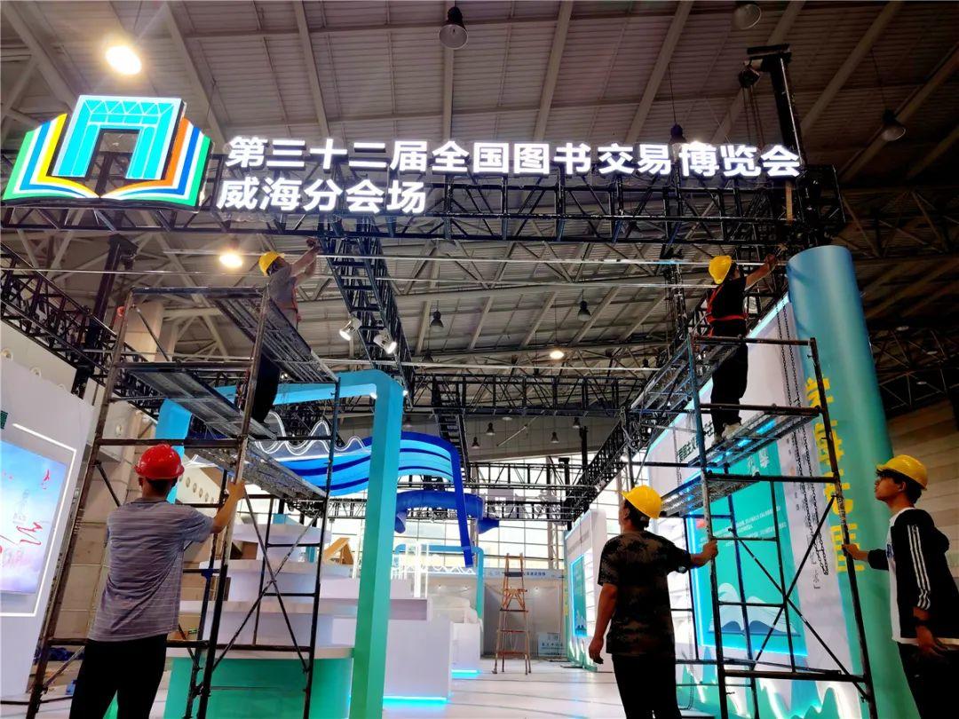 装设备、擦展台、摆放书籍……连日来,在威海国际展览中心C馆,数十名工作人员紧张忙碌。7月27日至29日,第三十二届全国图书交易博览会威海分会场活动将在此举办,随着筹备工作进入尾声,现场的文化气氛越来越浓。