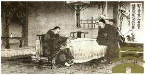 甲午战争期间屡失阵地的清军大将威海卫炮台相继失陷,北洋舰队前后受敌,陆军鼓噪哗变要求降敌求生,走投无路之中,丁汝昌引咎自杀。