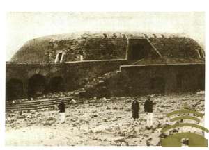 被日军炮火摧毁的威海卫日岛炮台被日军炮火摧毁的威海卫日岛炮台,图为占领该炮台的日军。(明信片)