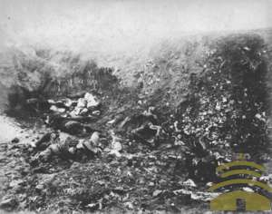 龙庙嘴炮台阵亡的清兵中日甲午战争时期,日军攻陷威海卫,图为龙庙嘴炮台阵亡的清兵。