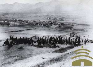 日军第二师团集合的场景中日甲午战争时期,日军攻陷威海卫港东南岸高地,第二师团集合的场景。