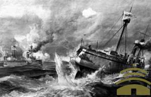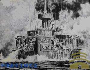 黄海大战中“致远”舰中弹沉没。经此一战,中国丧失了黄海制海权,直接影响到最终战局的胜负。