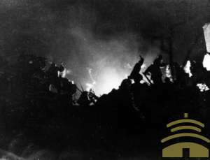 图为1946年8月晋冀鲁豫解放军在出击陇海线战役中夜攻单县。