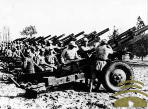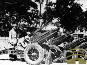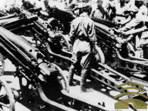 图为鲁南(峄枣)战役缴获的美造榴弹炮36门中之一部。