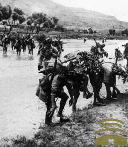 图为1947年沙土集战役中,华野西线兵团通过藤县境内的沙河,向鲁西南进发。