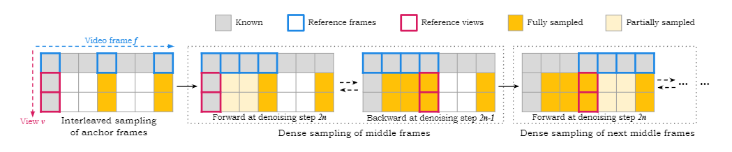 为了在保持时间一致性的同时,扩展生成的多视图视频,研发团队在推理过程中提出了一种新颖的混合采样策略。