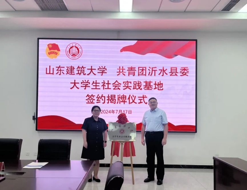 7月17日,山东建筑大学与共青团沂水县委共同举行大学生社会实践基地签约揭牌仪式,管理工程学院团委书记王颖、辅导员胡建飞,沂水团县委书记王英丞等一同参加。