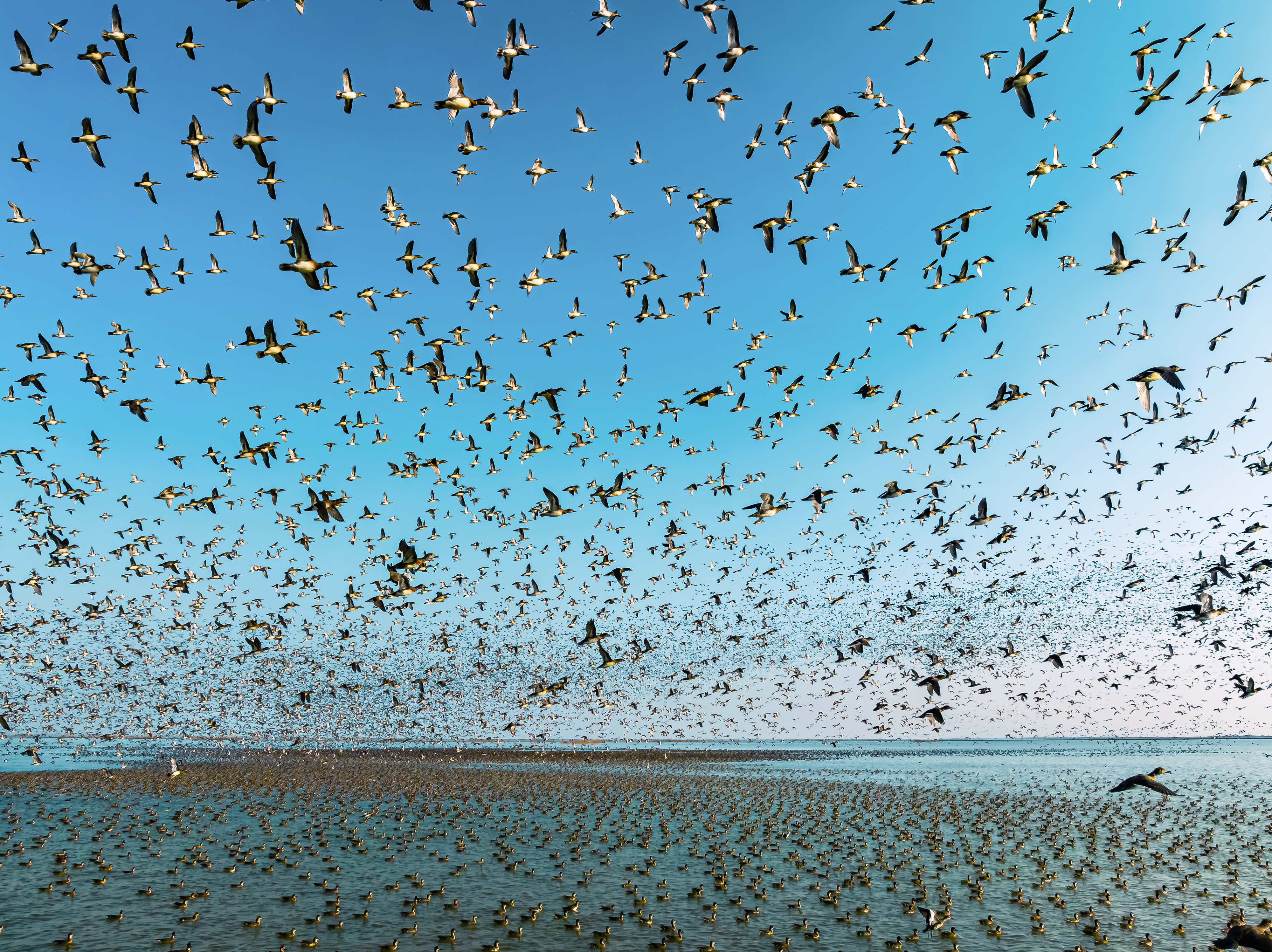 黄河三角洲国家级自然保护区壮观的鸟浪。 山东黄河三角洲国家级自然保护区供图 张俊臣 摄