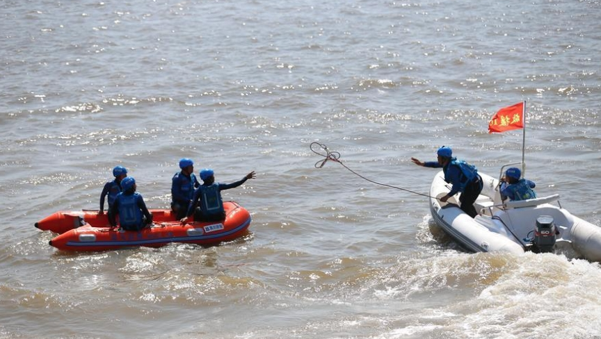 青岛市即墨区防汛应急救援志愿者进行防汛演练 图源新华网