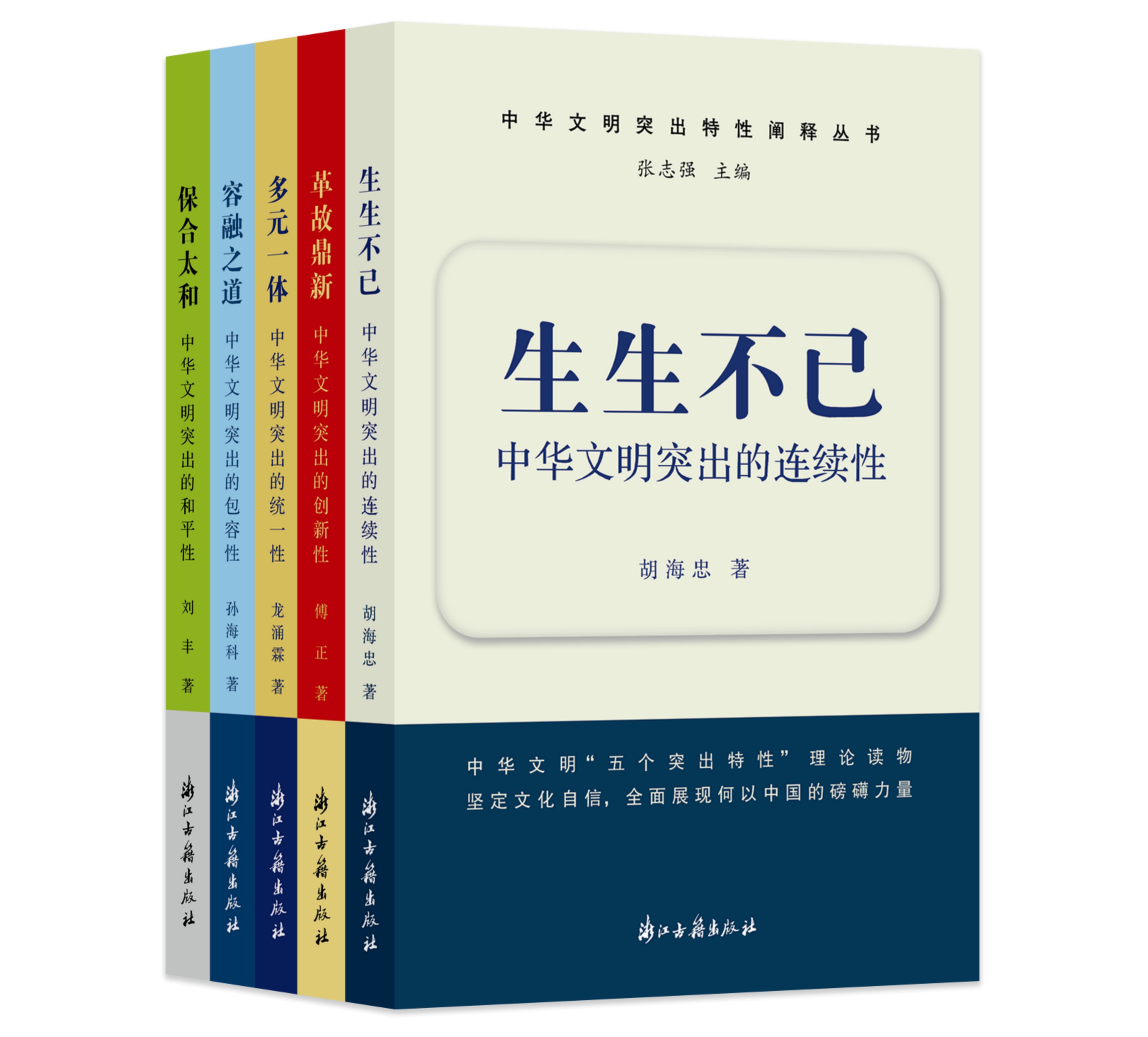 据悉,由中国社会科学院哲学研究所所长张志强主编、中国社会科学院哲学研究所中国哲学学科团队创作的“中华文明突出特性阐释丛书”已由浙江古籍出版社出版,该系列丛书分为《生生不已——中华文明突出的连续性》《革故鼎新——中华文明突出的创新性》《多元一体——中华文明突出的统一性》《容融之道——中华文明突出的包容性》《保合太和——中华文明突出的和平性》五个分册。丛书甫一上市即得到广泛好评,引起强烈反响,已入选6月光明好书榜和长安街读书会干部学习新书书单。