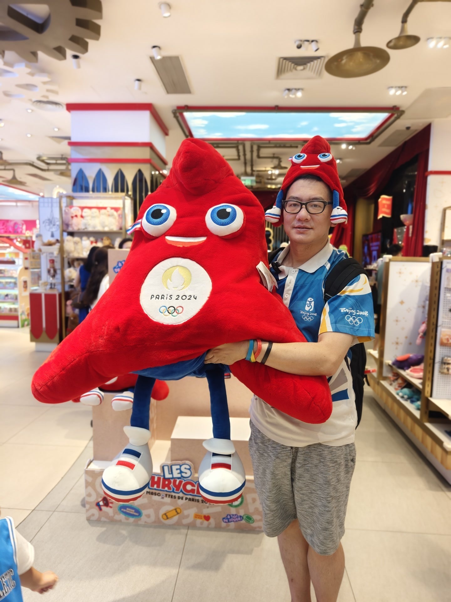 不少顾客专程为购买巴黎奥运会特许商品而来。奥运收藏爱好者张文全戴着吉祥物“弗里热”的帽子,抱着一个巨大的“弗里热”毛绒玩偶,正对着镜头拍照留念。“我已经收藏了80多件巴黎奥运会的周边纪念品了,有摆件、徽章、钥匙扣、帽子、杯子、毛巾、海报、体恤等,就差把这个大‘弗里热’收入囊中了。”张文全向记者晒出了他的众多奥运收藏品,“每一届奥运会的吉祥物,都有着独特的文化象征和美好寓意,这一届巴黎奥运会的各类吉祥物周边产品有很多是中国企业生产的,非常有收藏和纪念意义。”