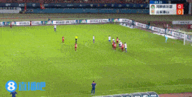 上半程补时第3分钟,郑铮主罚前场任意球被后卫头球解围,禁区外瓦科得球右脚远射,再次偏出球门。