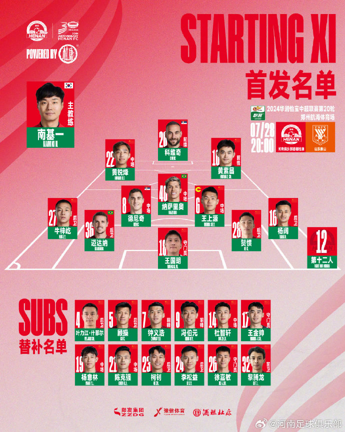 河南队一扫赛季初的颓势,7月份双线作战的情况下,仅有不敌海港一场败绩。球队五名外援均展现了不错的实力,黄紫昌也状态上佳,对比泰山队,可谓兵强马壮。本场科维奇、德尼奇、纳萨里奥、迈达纳四外援首发,阿奇姆彭缺阵,黄紫昌、王上源出战。