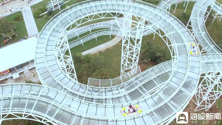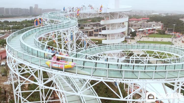 随着一声令下,漂流艇瞬间滑入滑道,一场“速度与激情”的盛宴就此拉开序幕。水滑道全长达350米,设计巧妙,激流段多达6处。在水流的带动下,游客乘着漂流艇沿着全透明的水滑道随波而下。经过各种曲折蜿蜒的滑道,时而急速冲刺,时而平缓漂流,目光所及碧海蓝天的壮丽美景,仿佛置身于一场夏日的狂欢之中。