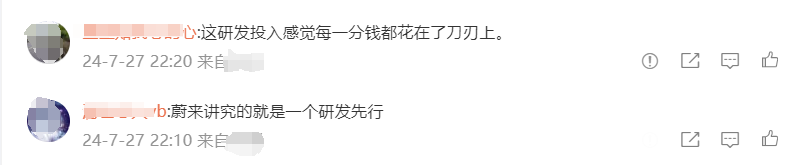 网友纷纷评价:“这研发投入感觉每一分钱都花在了刀刃上”,“蔚来讲究的就是一个研发先行”。