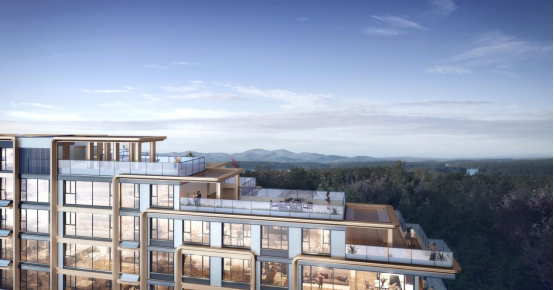户型设计层面,则遵循以人为本设计理念,精研功能属性及艺术美学兼顾的户型空间,让空间拥有生命。其中白沙河头排大平层产品,通过户型结构创新,及顶层与次顶层之间层层退台的关系,在临河面打造出一方空中观河庭院。得益于此设计,居者可私享一方空中观河庭院,悠然坐于其中,将天地风华尽揽于胸,抬眸便是十里碧水,入眼皆是葱林茂景。