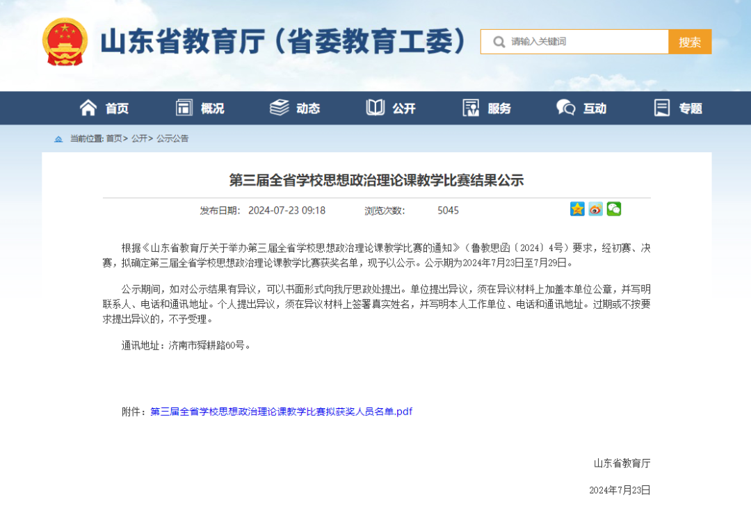 此次比赛是山东省思想政治理论课教学领域最高水平的赛事,获奖难度大、奖项含金量高。比赛由山东省教育厅主办,自今年4月启动以来,历经初赛和决赛,共有294名大中小学的思政课教师闯入决赛。
