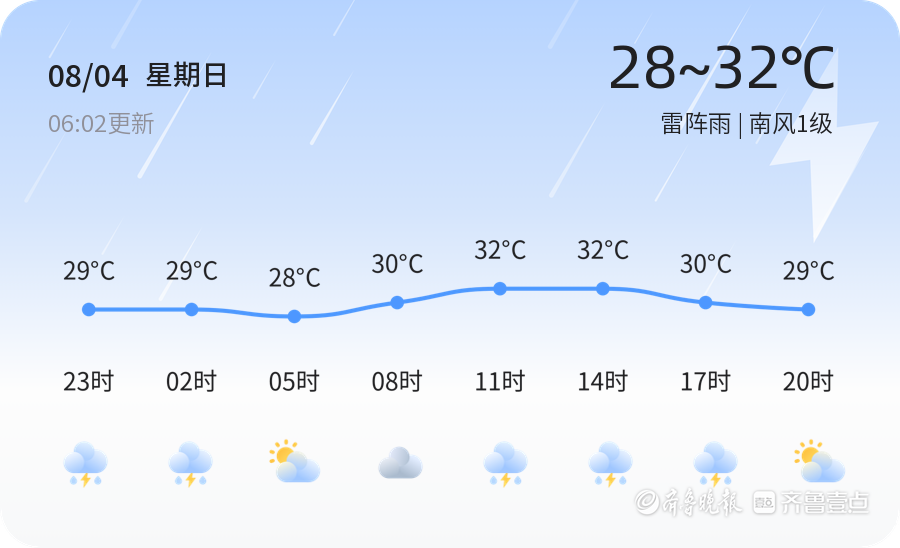 【东营今日天气速报】2024年8月4日,农历七月初一,东营市迎来雷阵雨天气,当前气温28.8℃,南风1级,空气湿度高达85%,体感较为闷热。PM2.5浓度为30微克/立方米,空气质量状况为优,适合外出活动。然而,由于雷阵雨天气,市民出行请务必携带雨具,注意交通安全,避免涉水行走,以防滑倒。